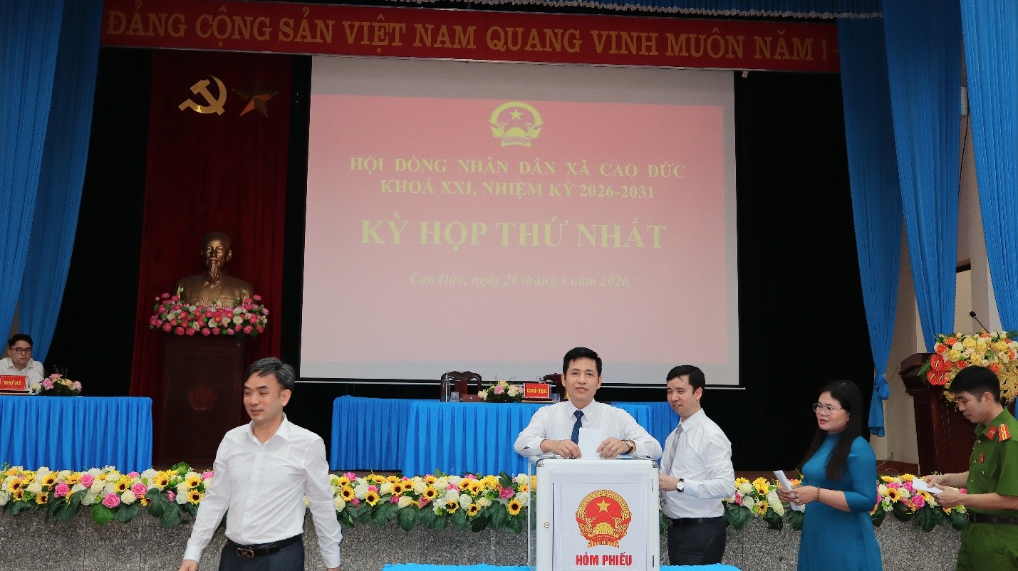 Chiều ngày 26/3/2026, tại Nhà văn hóa xã, Hội đồng nhân dân (HĐND) xã Cao Đức khóa XXI, nhiệm kỳ 2026–2031 đã long trọng tổ chức Kỳ họp thứ Nhất. Đây là kỳ họp có ý nghĩa đặc biệt quan trọng nhằm kiện toàn tổ chức bộ máy chính quyền địa phương sau thành công của cuộc bầu cử đại biểu Quốc hội khóa XVI và đại biểu HĐND các cấp nhiệm kỳ 2026–2031.