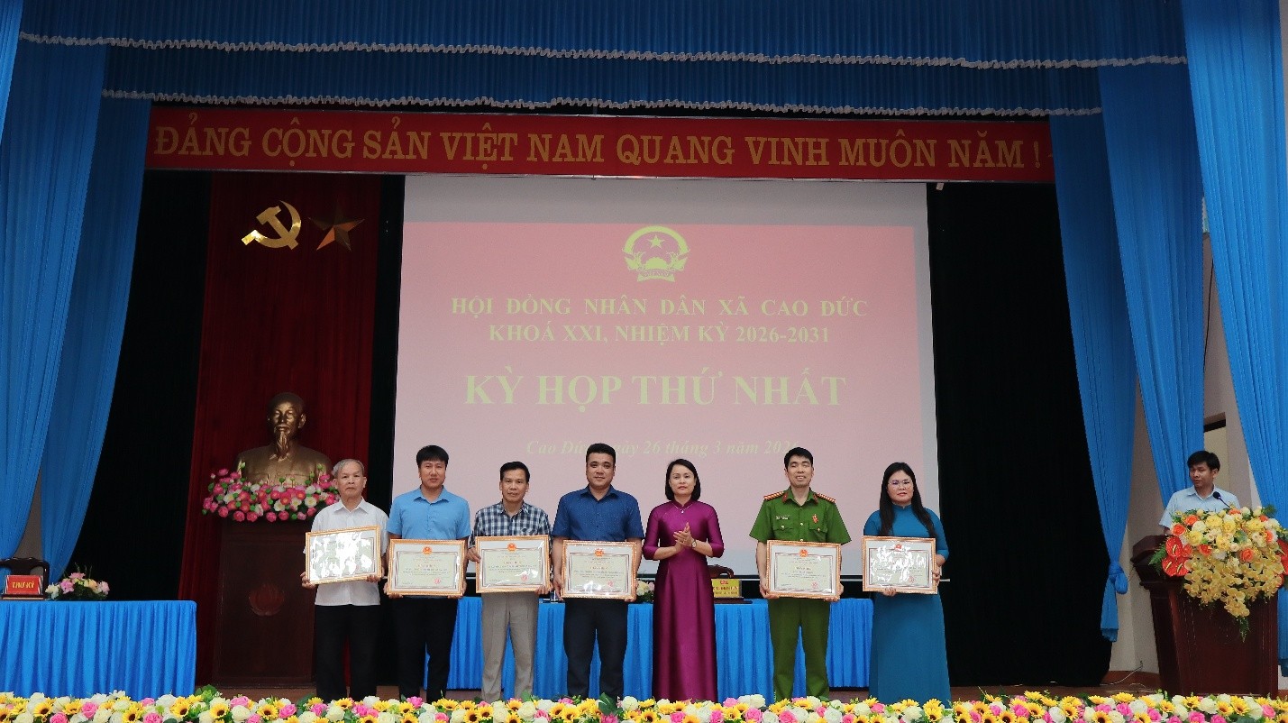 Sau thời gian làm việc nghiêm túc, dân chủ và trách nhiệm cao, Kỳ họp thứ Nhất HĐND xã Cao Đức khóa XXI, nhiệm kỳ 2026–2031 đã hoàn thành toàn bộ nội dung chương trình đề ra và thành công tốt đẹp. Đây là tiền đề quan trọng để xây dựng chính quyền địa phương vững mạnh, đáp ứng niềm tin và kỳ vọng của cử tri và Nhân dân trong xã.
